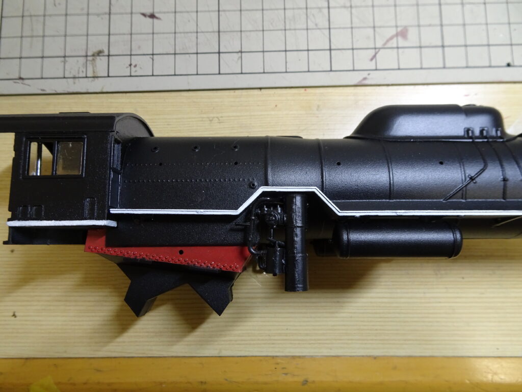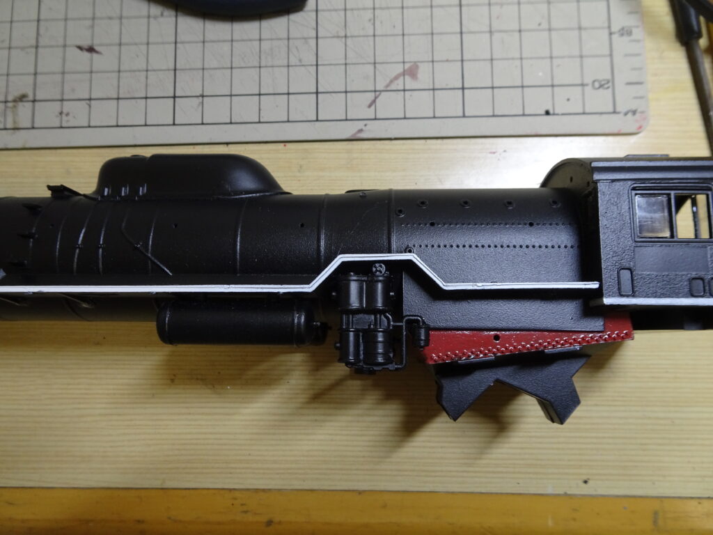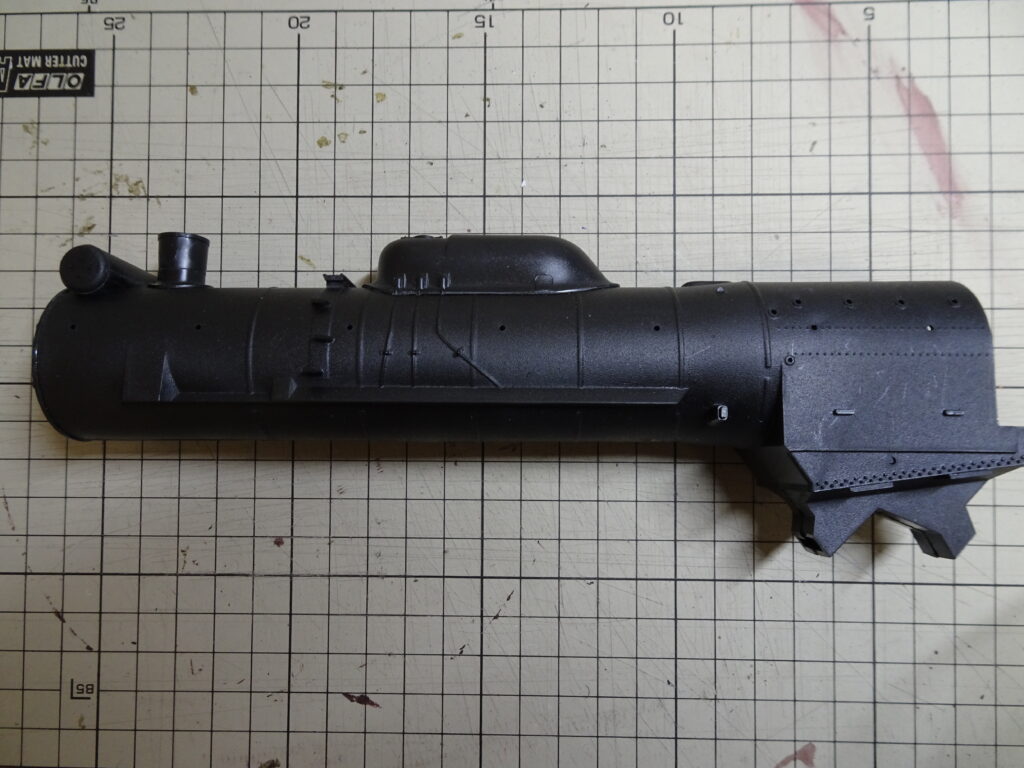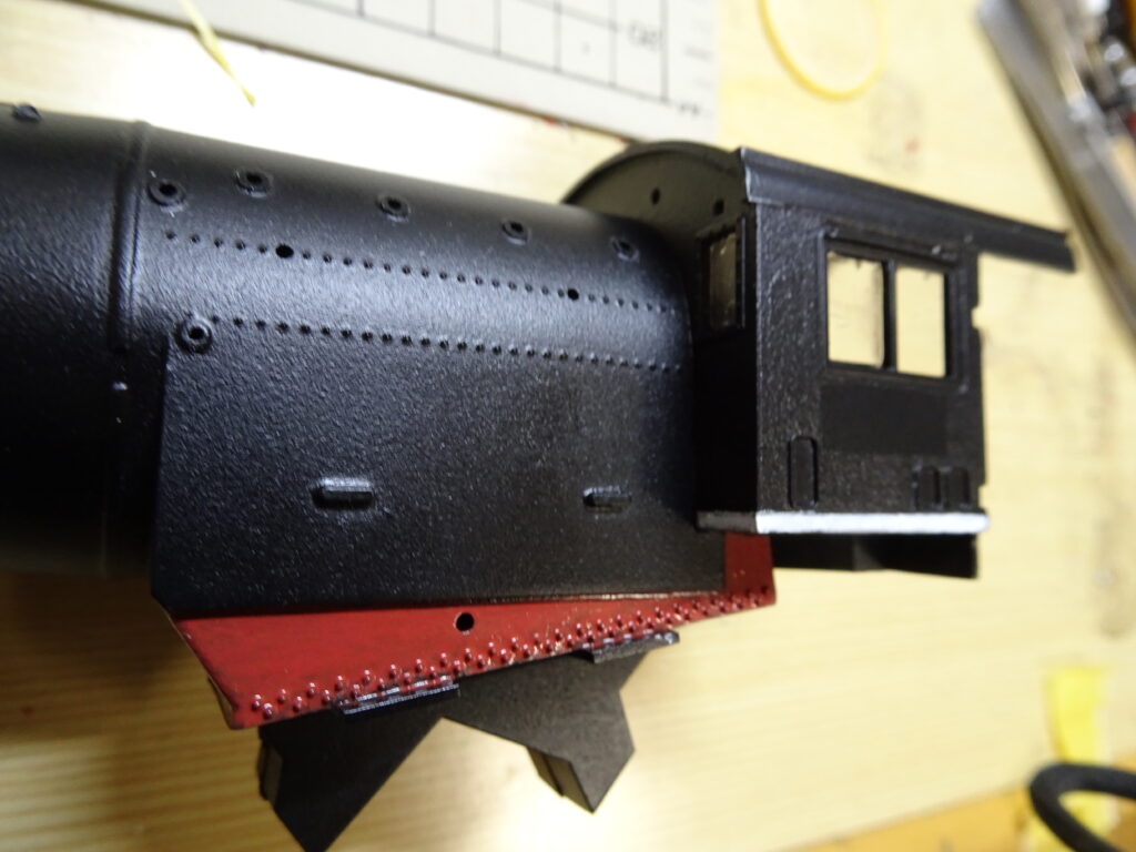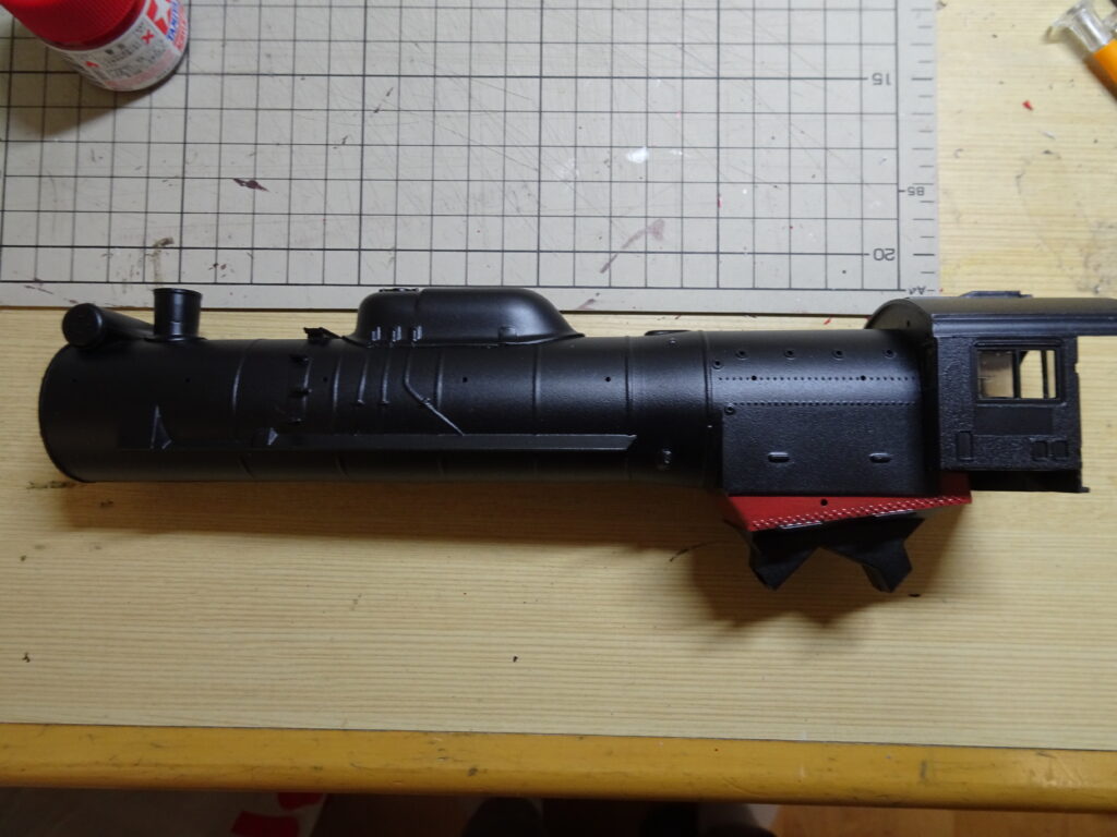 工程の順序は違いますが、画像1のように、先に工程25のボイラー回りの主要な部品(蒸気ドーム・給水温め器・踏板・煙突)を取り付けてから塗装しました。