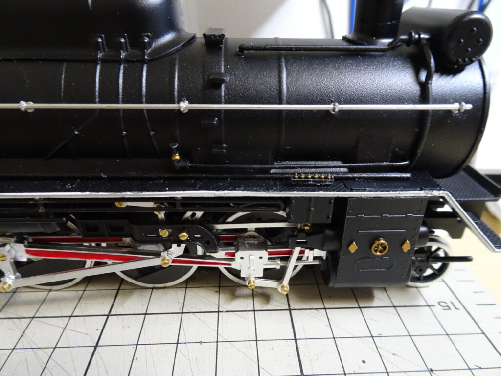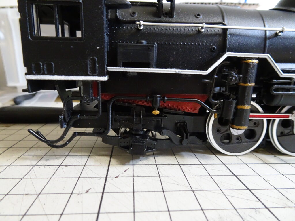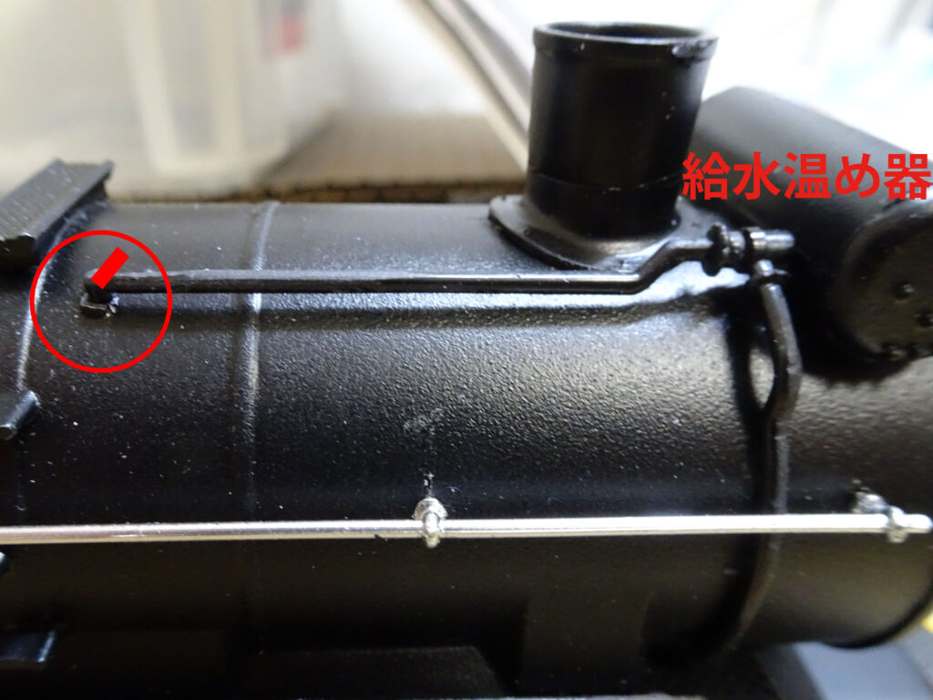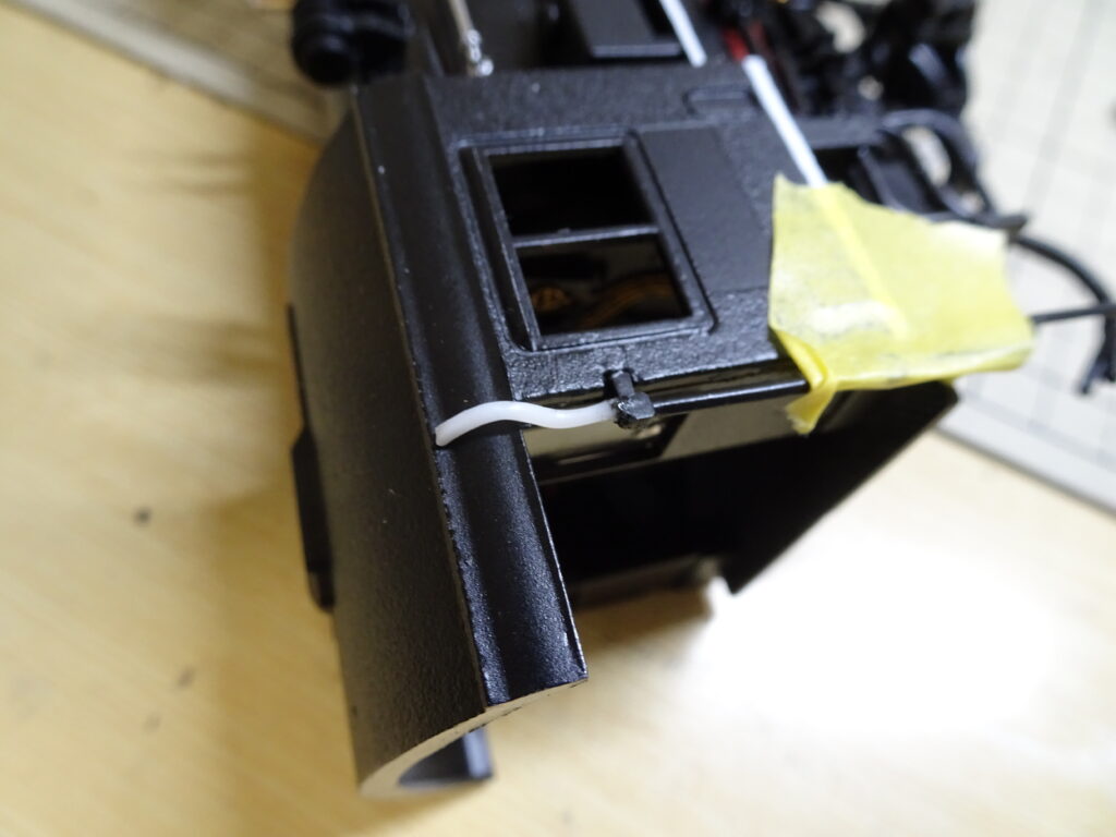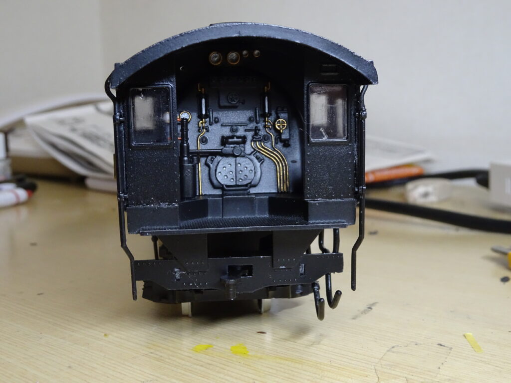 樋をキャブに取り付けたのが画像4です。うまく取りつきました。京都鉄道博物館のD51-200のキャブ樋上部も同じような形状になっています。